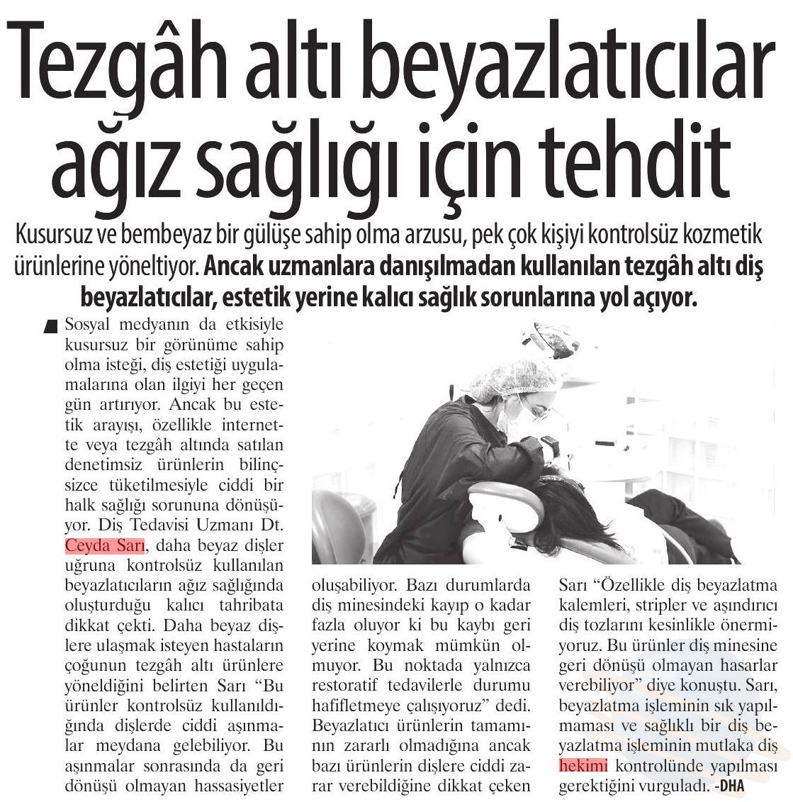 Daha beyaz dişlere ulaşmak isteyen hastaların çoğunun tezgah altı ürünlere yöneldiğini belirten Dt. Sarı, “Bu ürünler kontrolsüz kullanıldığında dişlerde ciddi aşınmalar meydana gelebiliyor. Bu aşınmalar sonrasında da geri dönüşü olmayan hassasiyetler oluşabiliyor. Bazı durumlarda diş minesindeki kayıp o kadar fazla oluyor ki bu kaybı geri yerine koymak mümkün olmuyor. Bu noktada yalnızca restoratif tedavilerle durumu hafifletmeye çalışıyoruz” dedi.