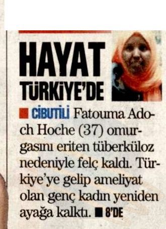 Aylar sonra ayağa kalkan Fatouma Adoch Hoche ise duygularını şu sözlerle ifade etti: “Hastaneye geldiğimde yatalaktım, Tüberküloz hastalığım vardı ve belim kırılmıştı. Kızımın tedavisi için geldiğim İstanbul'da ben de şifa buldum. Bugün sağlık durumum çok iyi, kendim yürüyebiliyorum ve mutluluğum tarif edilemez. Şifa Allah’tan ama buradaki hocalarımız bana karşı çok ilgili ve profesyonellerdi.”