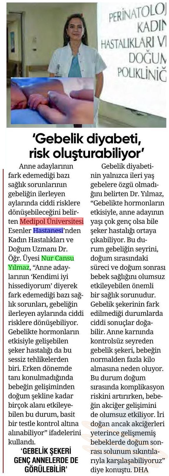 Erken tanının önemine dikkat çeken Dr. Yılmaz, uygun diyet, egzersiz ve gerekirse ilaç tedavisiyle hem annenin hem de bebeğin korunabileceğini belirterek sözlerini şöyle tamamladı:
