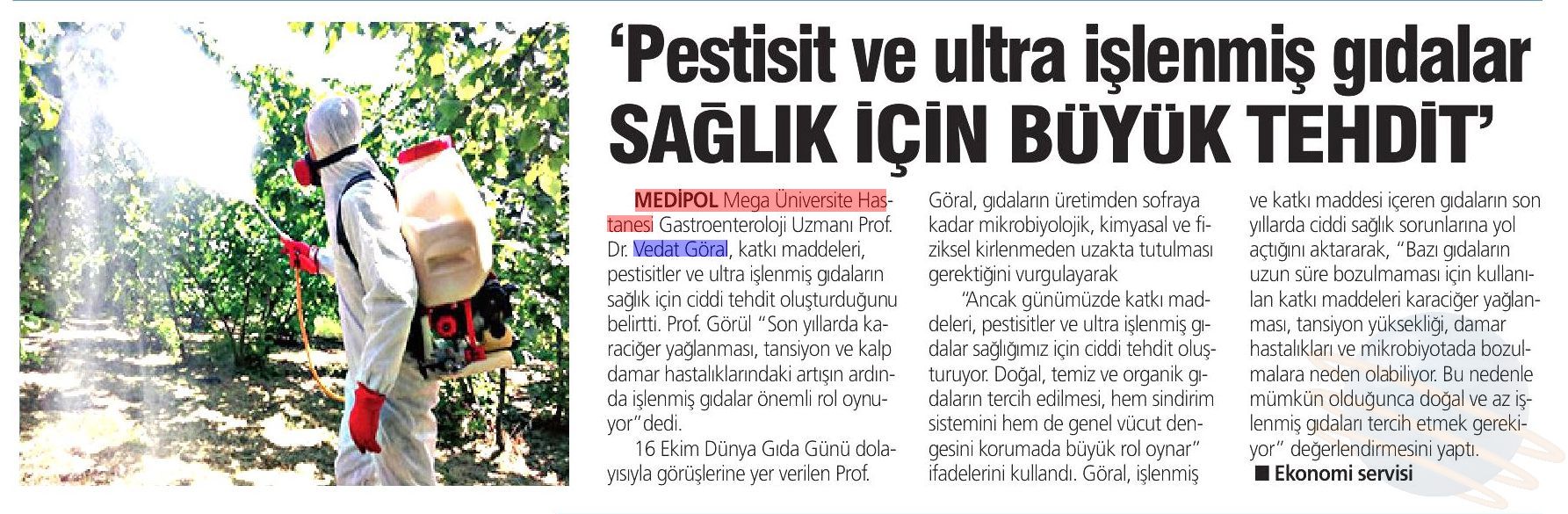 Son yıllarda karaciğer yağlanması, tansiyon ve kalp damar hastalıklarındaki artışın ardında işlenmiş gıdalar önemli bir rol oynuyor. Dünya Gıda Günü kapsamında önemli uyarılarda bulunan Medipol Mega Üniversite Hastanesi’nden Gastroenteroloji Uzmanı Prof. Dr. Vedat Göral, katkı maddeleri ve pestisitlerin insan sağlığını olumsuz etkilediğini belirterek, “Doğal, temiz ve organik gıdaların tercih edilmesi, hem sindirim sistemini hem de genel vücut dengesini korumada büyük rol oynar” ifadelerini kullandı.