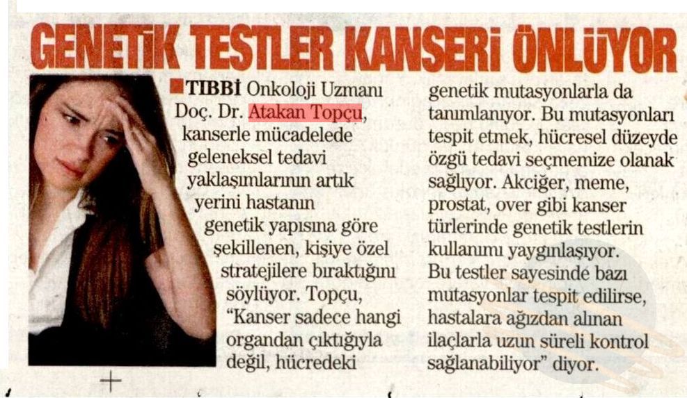 Özellikle akciğer, meme, prostat, over gibi kanser türlerinde genetik testlerin kullanımının yaygınlaştığını söyleyen Doç. Topçu, “Bu testler sayesinde bazı mutasyonlar tespit edilirse, hastalara kemoterapi yerine ağızdan alınan ilaçlarla uzun süreli kontrol sağlanabiliyor” dedi.