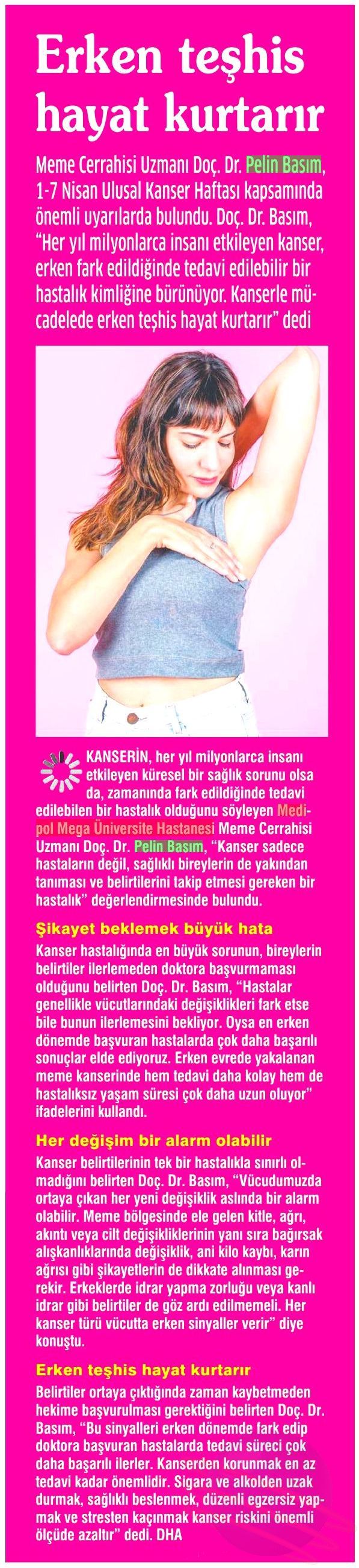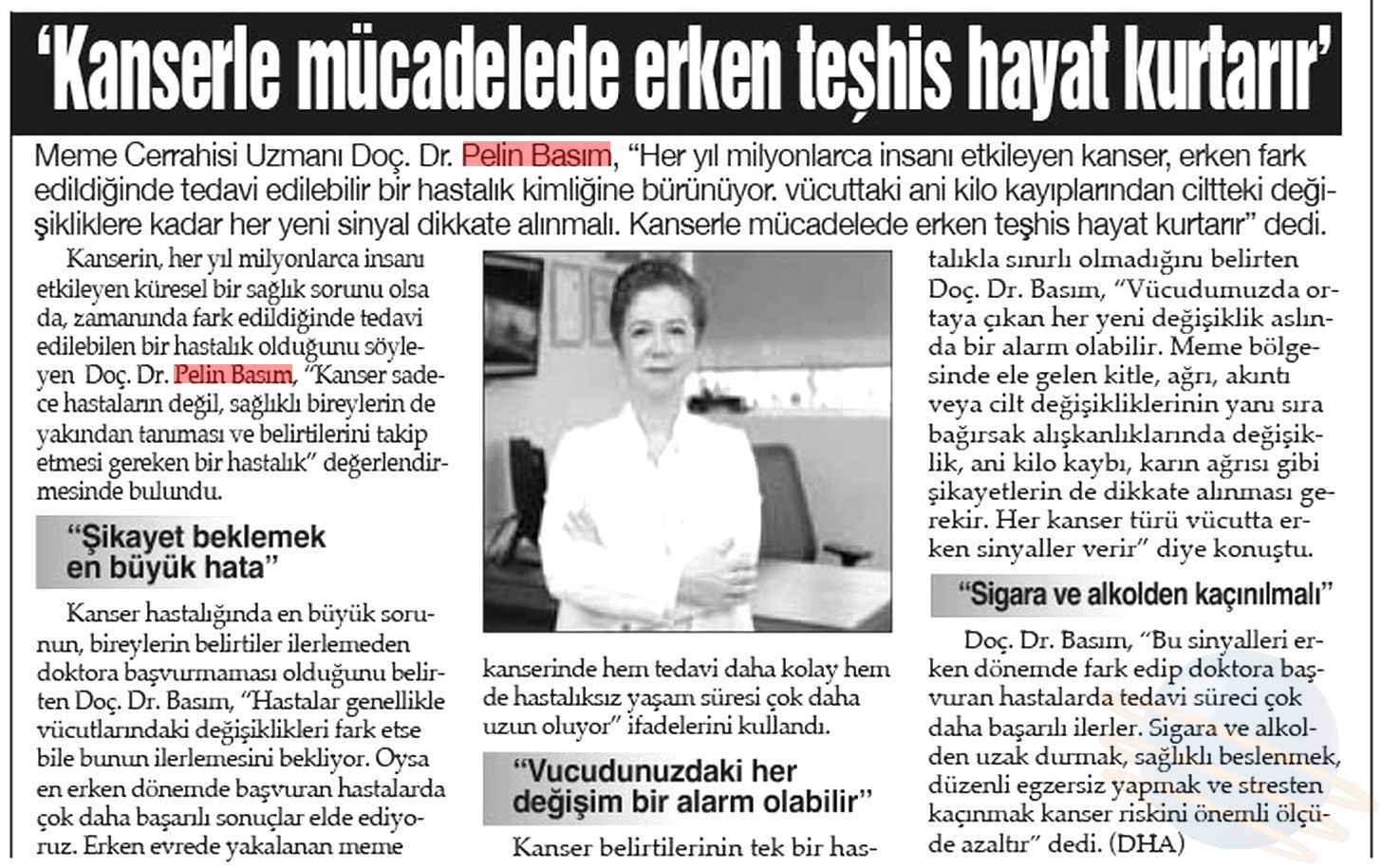 Kanser hastalığında en büyük sorunun, bireylerin belirtiler ilerlemeden doktora başvurmaması olduğunu vurgulayan Doç. Dr. Basım, “Hastalar genellikle vücutlarındaki değişiklikleri fark etse bile bunun ilerlemesini bekliyor. Oysa en erken dönemde başvuran hastalarda çok daha başarılı sonuçlar elde ediyoruz. Erken evrede yakalanan meme kanserinde hem tedavi daha kolay hem de hastalıksız yaşam süresi çok daha uzun oluyor” ifadelerini kullandı.