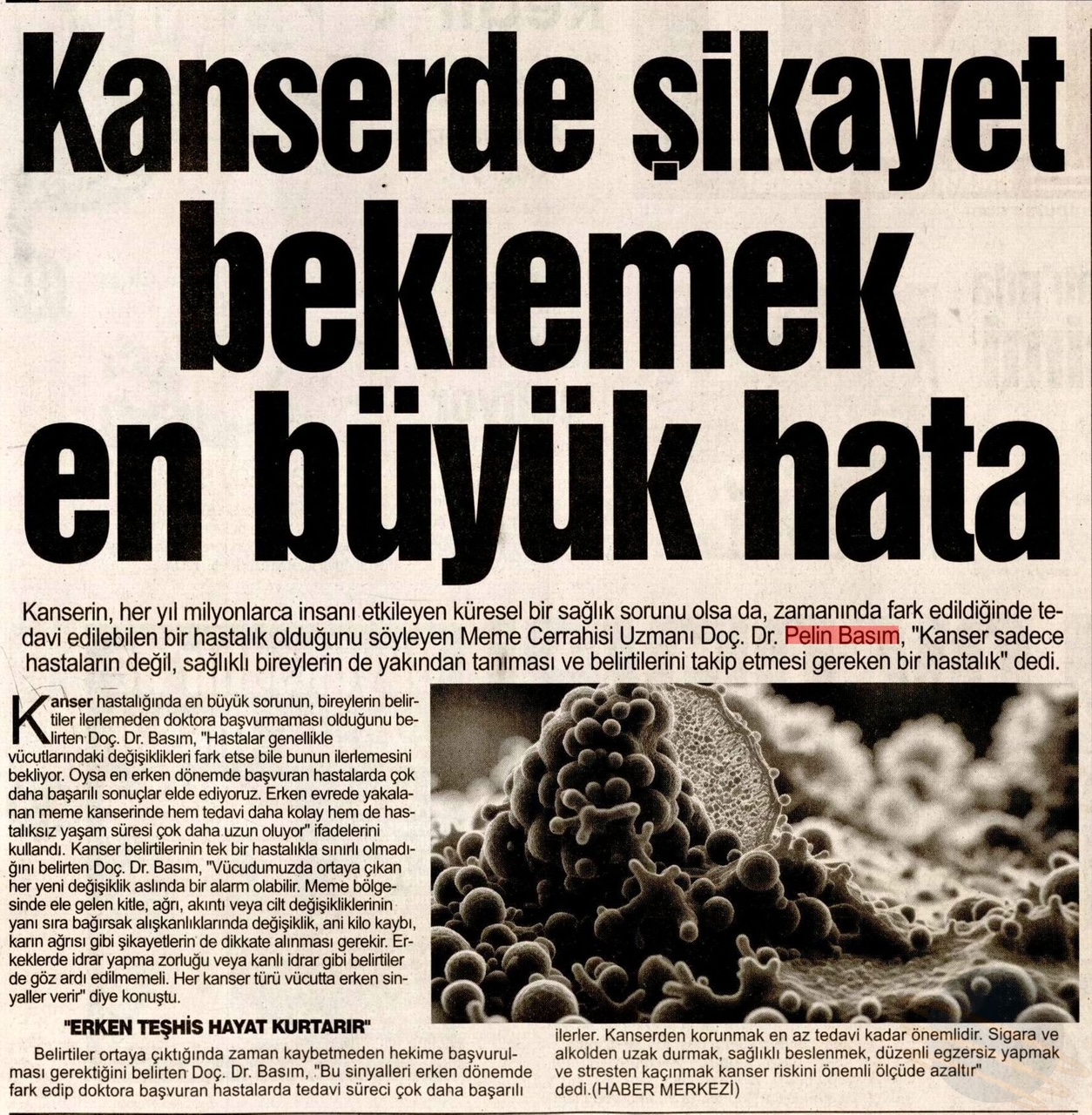 Belirtiler ortaya çıktığında zaman kaybetmeden hekime başvurulması gerektiğini belirten Doç. Dr. Basım, “Bu sinyalleri erken dönemde fark edip doktora başvuran hastalarda tedavi süreci çok daha başarılı ilerler. Kanserden korunmak en az tedavi kadar önemlidir. Sigara ve alkolden uzak durmak, sağlıklı beslenmek, düzenli egzersiz yapmak ve stresten kaçınmak kanser riskini önemli ölçüde azaltır” dedi.