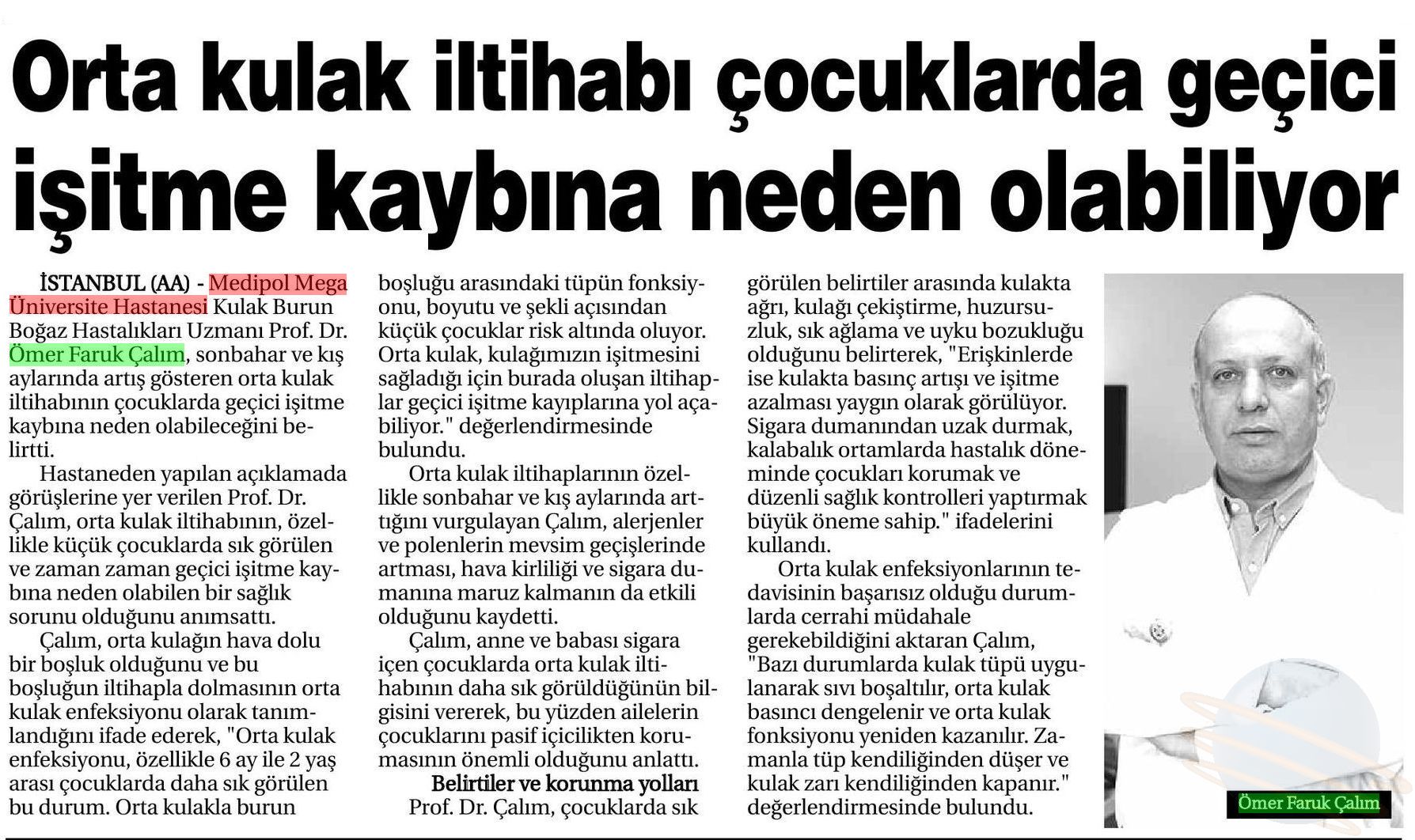 Orta kulak iltihabı, özellikle küçük çocuklarda sık görülen ve zaman zaman geçici işitme kaybına neden olabilen bir sağlık sorunu. Medipol Mega Üniversite Hastanesi Kulak Burun Boğaz Hastalıkları Uzmanı Prof. Dr. Ömer Faruk Çalım, orta kulak enfeksiyonlarının nedenlerini, risk faktörlerini ve tedavi yöntemleri hakkında önemli bilgiler paylaştı.